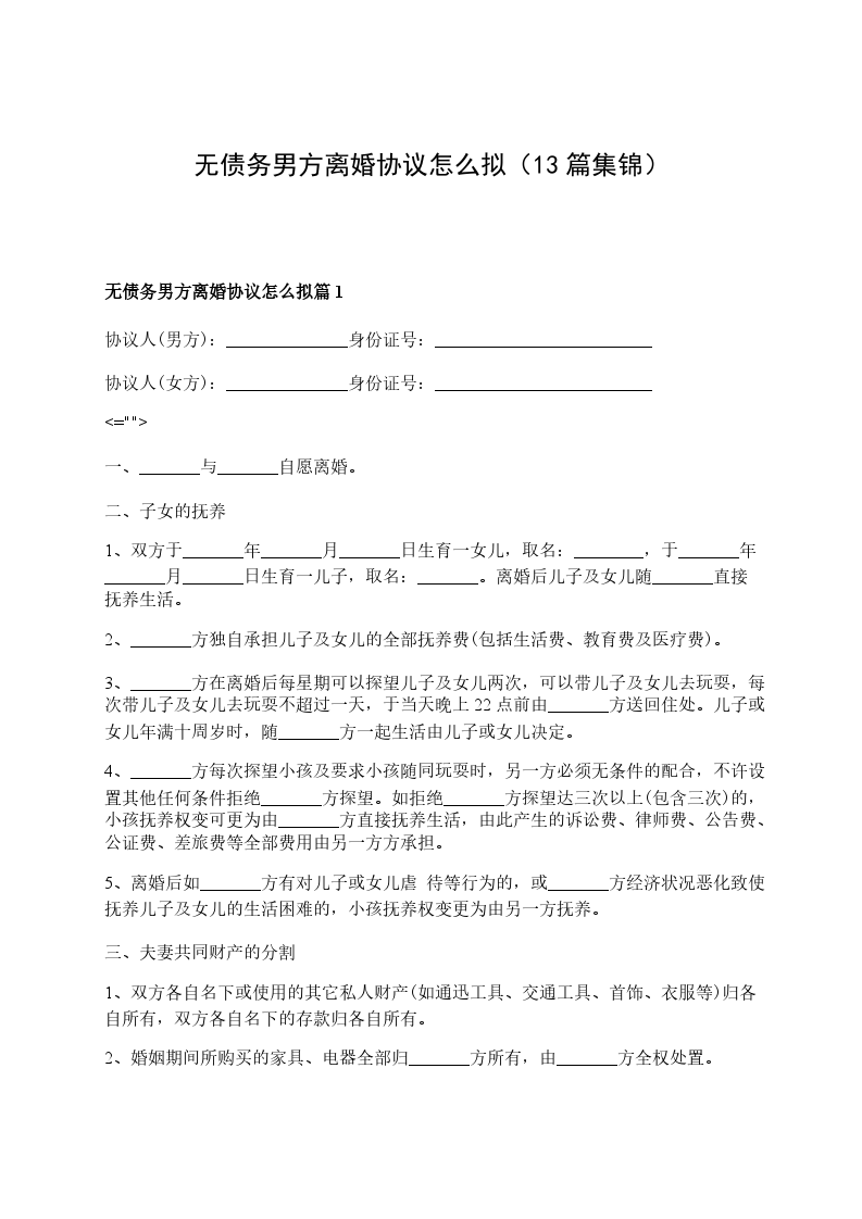 新版男方离婚协议书怎么拟篇8