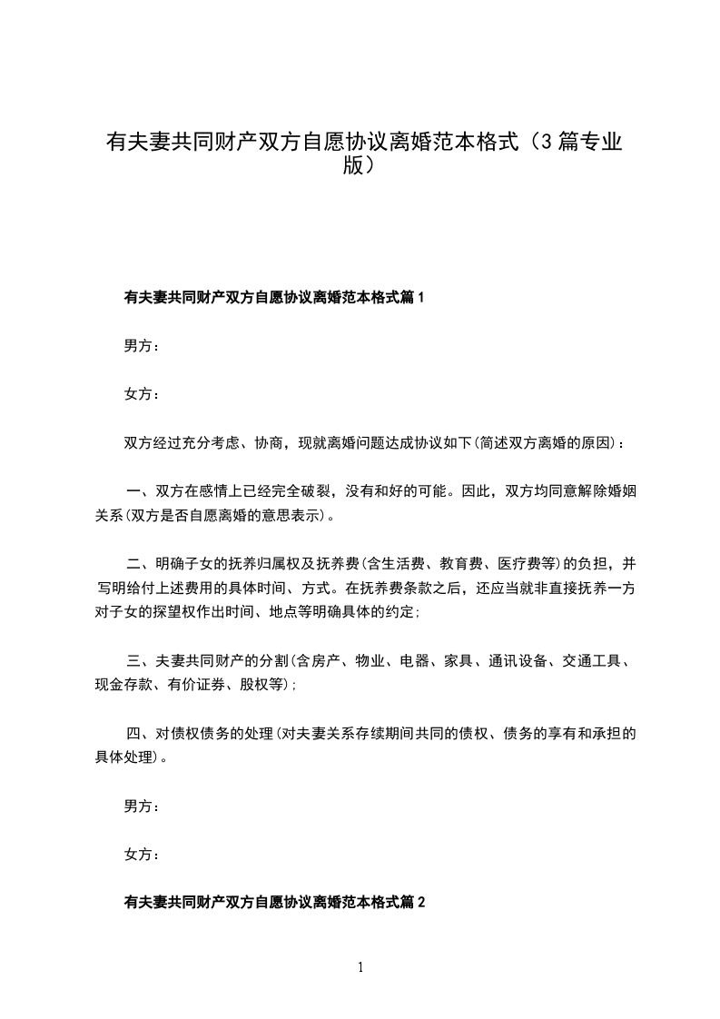 一、男、女双方自愿离婚。