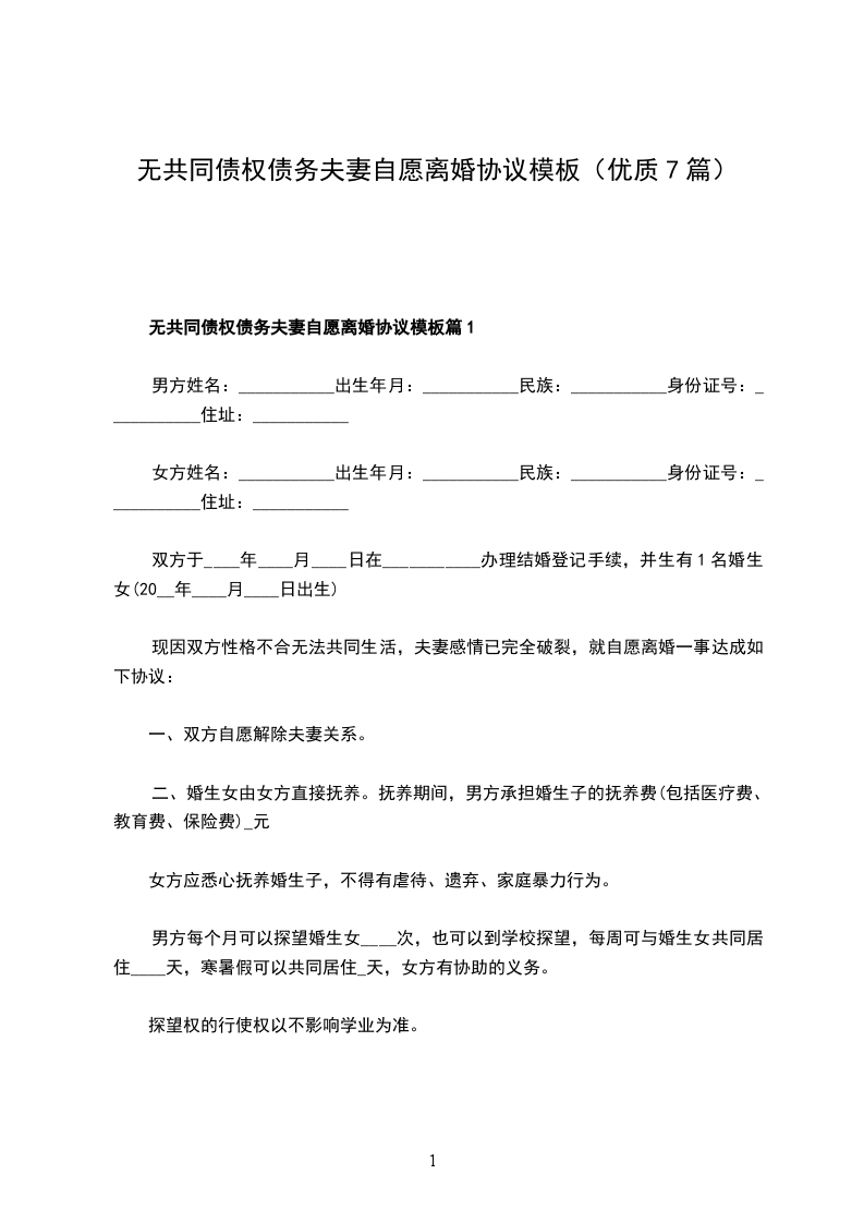 无共同的债务夫妻离婚协议篇7