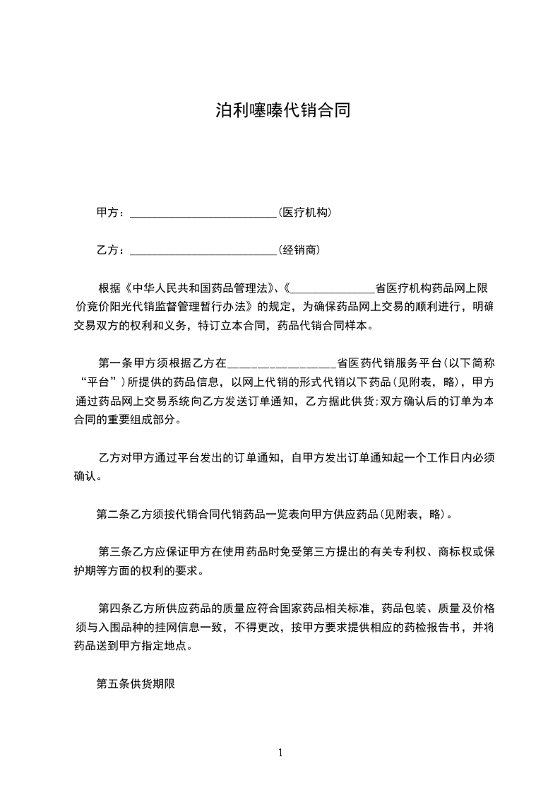 五、乙方收货后,在经营过程中发现所供药品质量有问题,应尽快通知甲方或向甲方查询,甲方应及时提出处理意见。