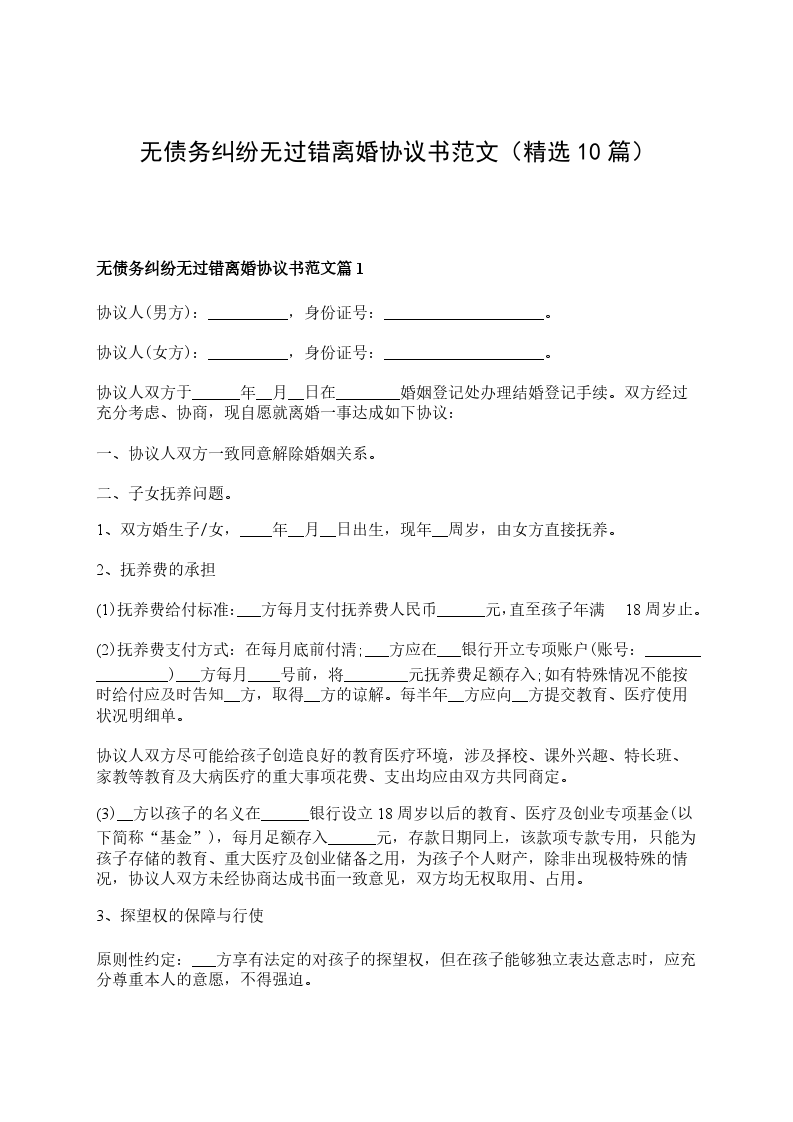 无债务纠纷无过错协议离婚书篇10