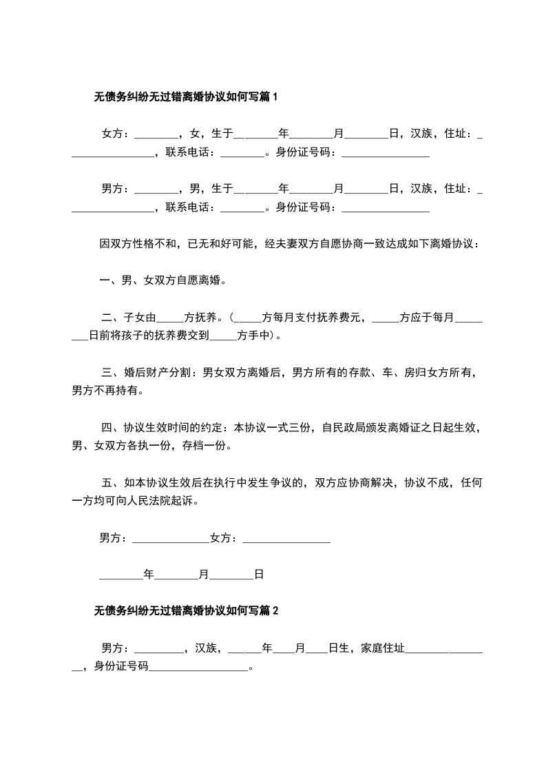 无债务纠纷无过错协议离婚书篇2