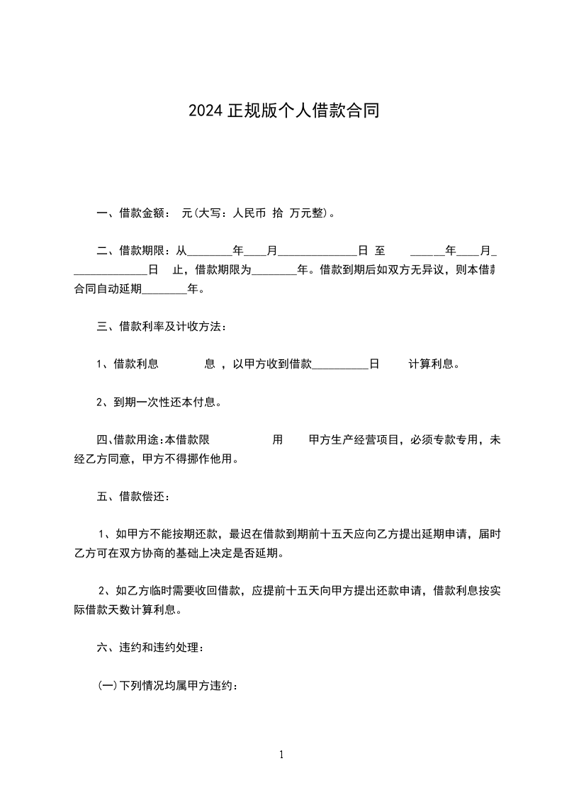 乙方贷给甲方人民币(大写)______________,于 ____年 ____月 ____日前交付甲方。