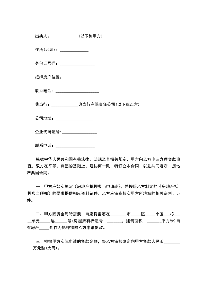 4.典当期限:___________________
