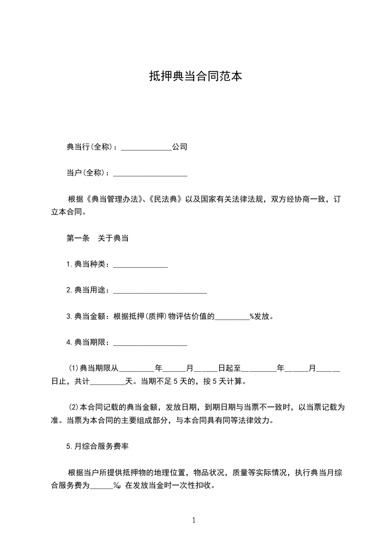 根据《典当管理办法》、《民法典》以及国家有关法律法规,双方经协商一致,订立本合同。
