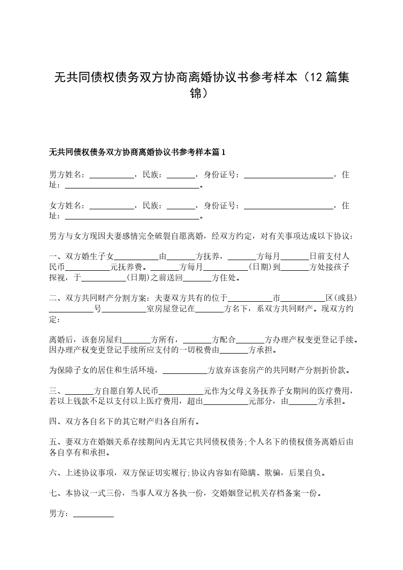 1、本协议一式三份,自婚姻登记机关颁发《离婚证》之日起生效,男、女双方各执一份,婚姻登记机关存档一份。