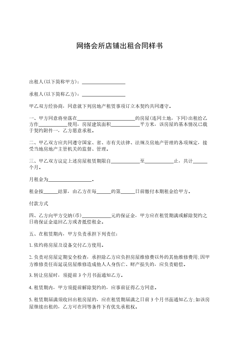 五、租赁期年,自_____年_____月_____日起至_____年_____月_____日止。