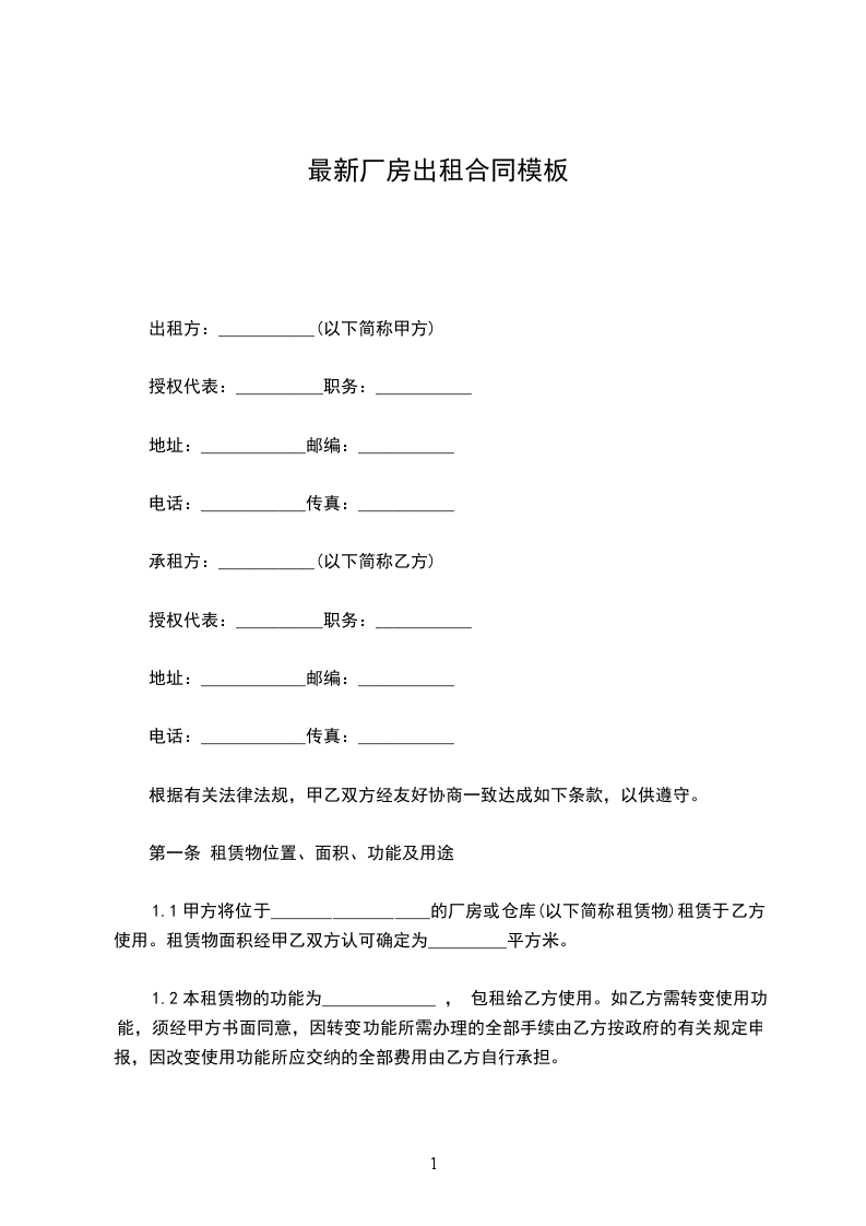 根据国家有关规定,甲、乙双方在自愿、平等、互利的基础上就甲方将其合法拥有的厂房出租给乙方使用的有关事宜,双方达成协议并签定合同如下: