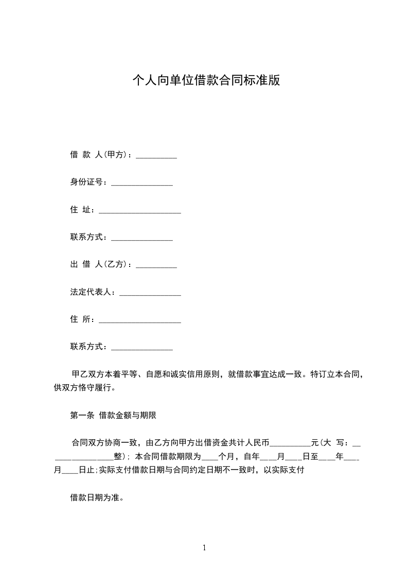 合同双方协商一致,由乙方向甲方出借资金共计人民币__________元(大 写:________________整); 本合同借款期限为____个月,自年____月____日至____年____月____日止;实际支付借款日期与合同约定日期不一致时,以实际支付