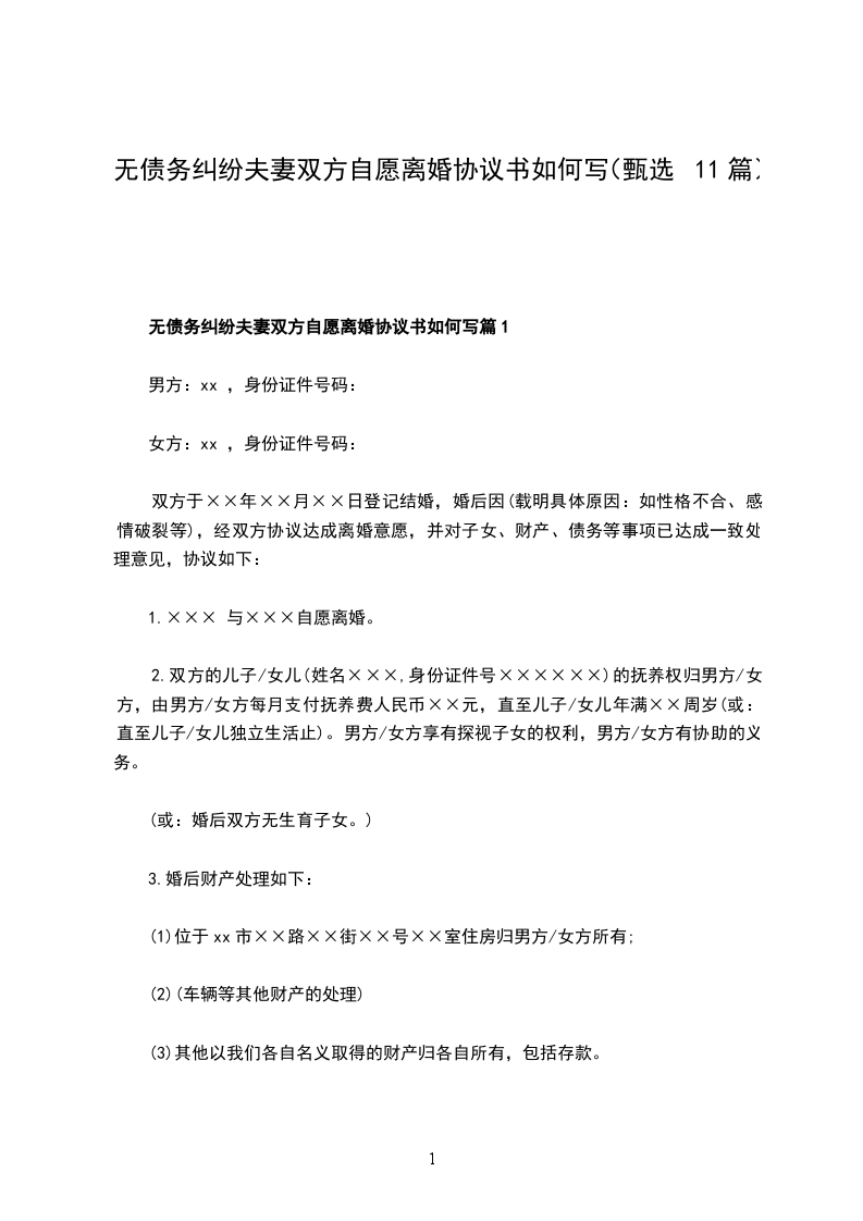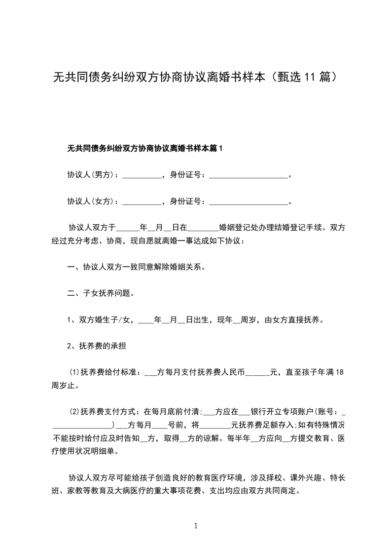 无债务纠纷双方协商协议离婚书模板篇11