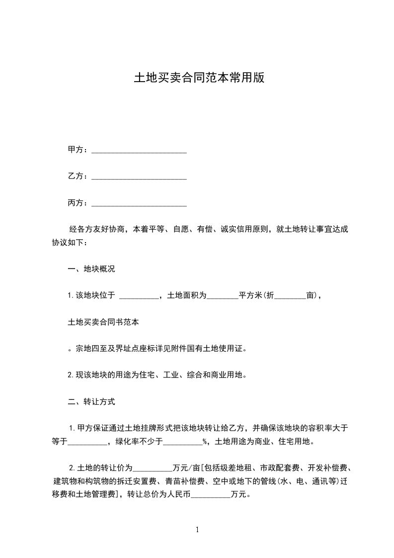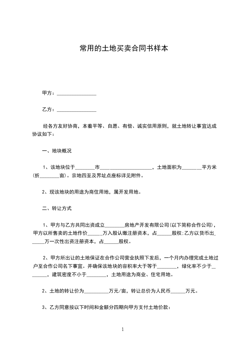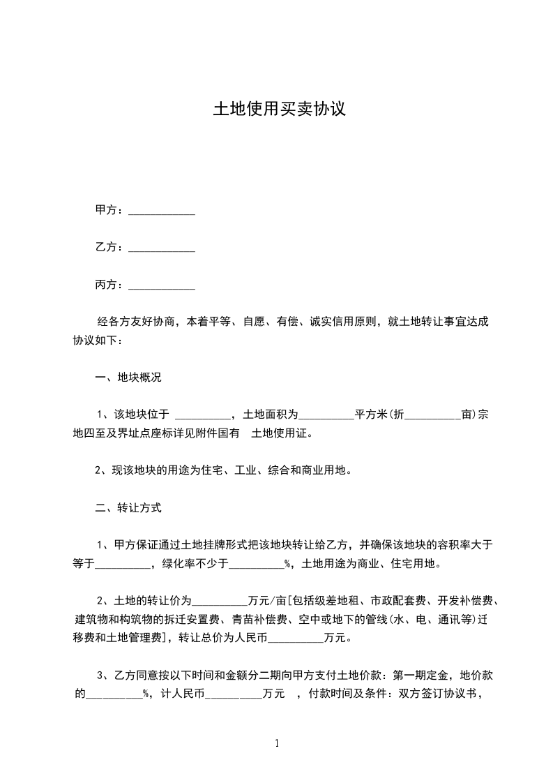 1.甲方保证通过土地挂牌形式把该地块转让给乙方,并确保该地块的容积率大于等于__________,绿化率不少于__________%,土地用途为商业、住宅用地。