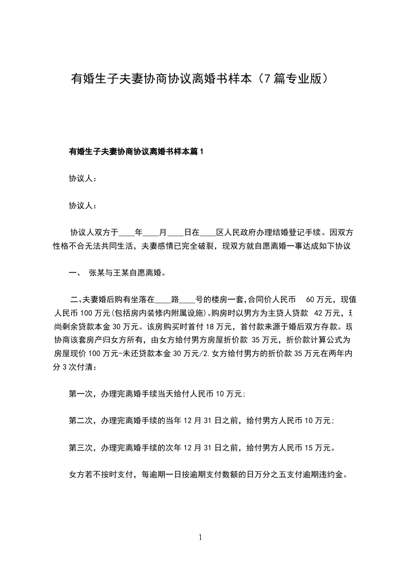 有婚生子夫妻离婚协议模板篇1