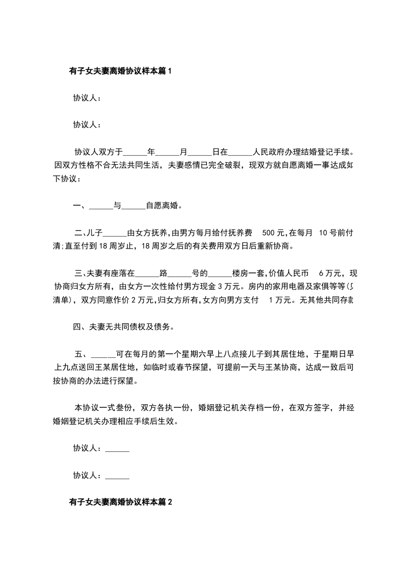 有婚生子夫妻离婚协议模板篇2