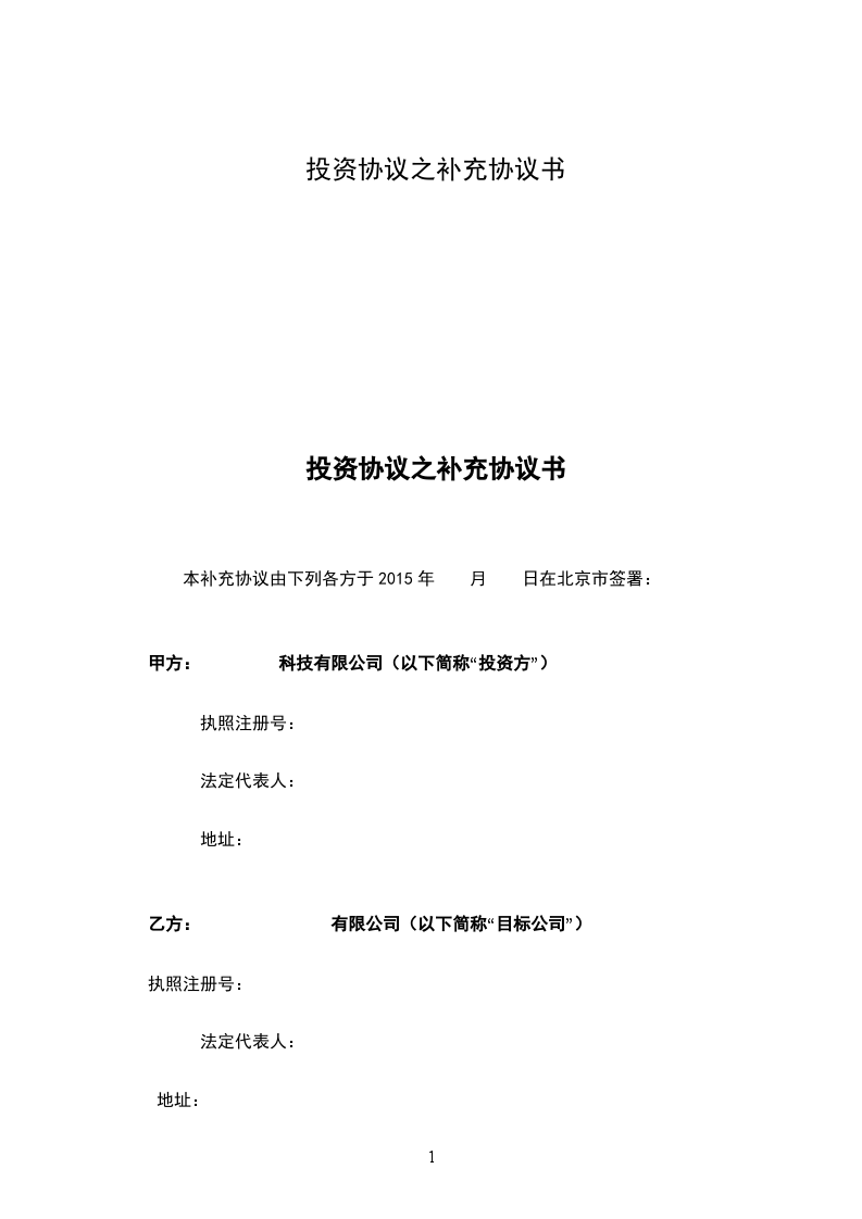 投资协议之补充协议书