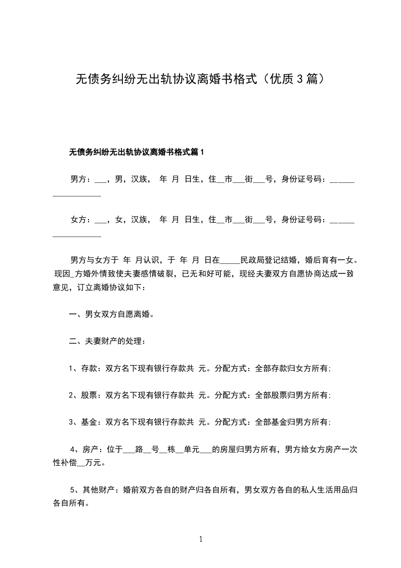本协议一式三份,自签订之日起生效,男、女双方各执一份,婚姻登记机关存档一份。