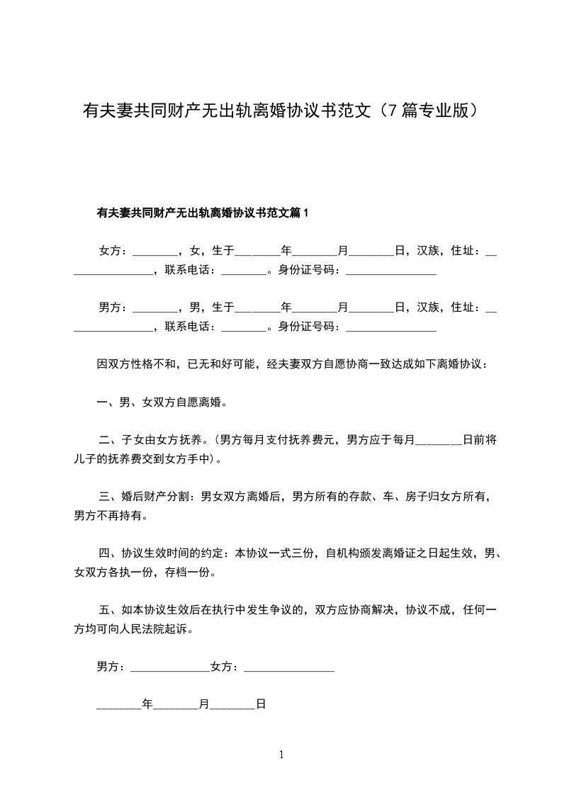 八、本协议一式三份,男、女双方各执一份,婚姻登记机关存档一份。