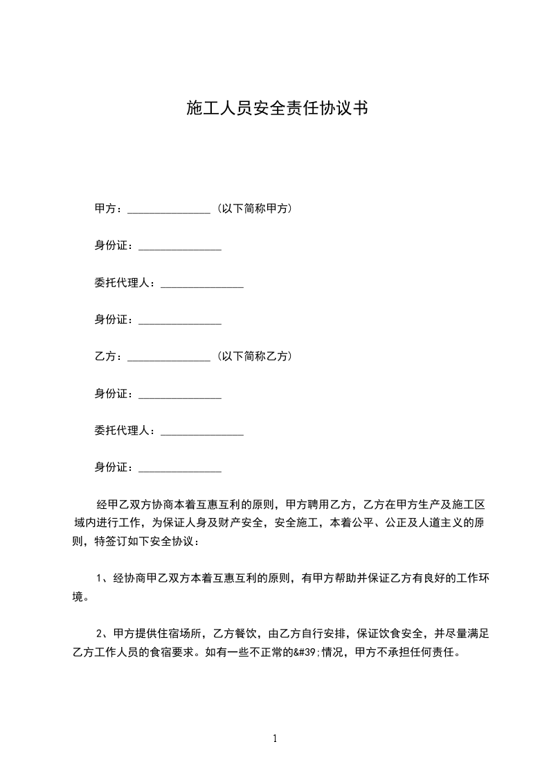 5、乙方施工人员及现场负责人员的安全均由乙方负责,如因有乙方人员在工作期间、上下班途中、夜不归宿及娱乐等原因发生的意外均由乙方自行承担,与甲方不发生任何关系。