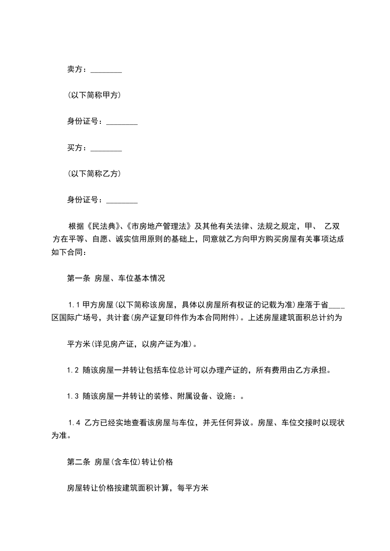 1、 乙方购买甲方坐落在_________市_______区(县)_____________路_________
