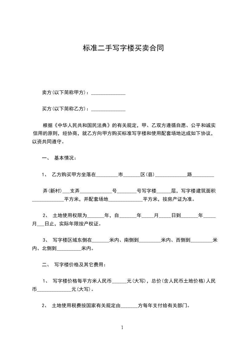 1、 写字楼价格每平方米人民币______元(大写),总价(含人民币土地价格)人民币______________元(大写)。
