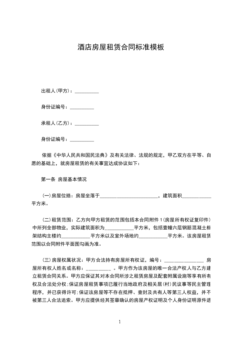 (一)房屋租赁期:自______年______月______日至______年______月______日,共计___________年(____________年)。