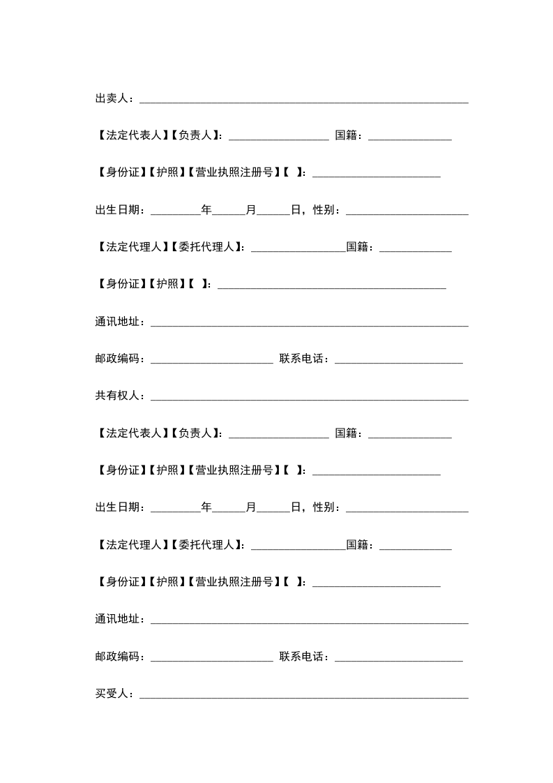 【身份证】【护照】【营业执照注册号】【 】:_______________________