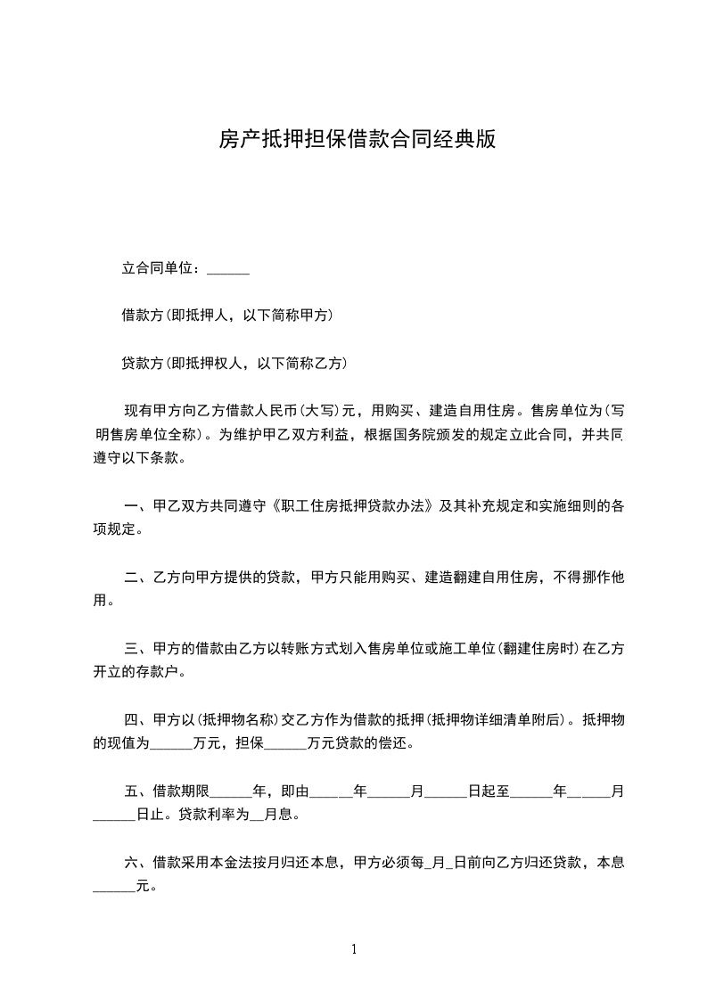 第一条 自_________年_________月_________日起,由贷款方向借款方提供____________(种类)贷款(大写)_________元,用于_________,还款期限至_________年_________月_________日,利率按月息_________‰计算。贷款利率如遇国家调整,按调整后的新利率和计息方法计算。