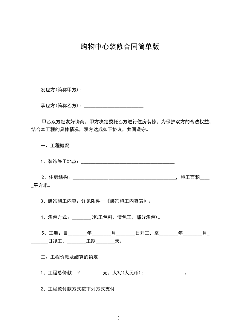 1、工程总价款:¥_________元,大写(人民币):________________。