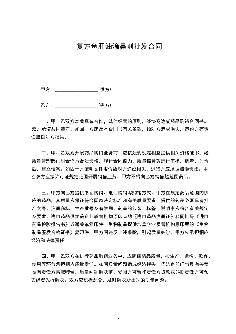 五、乙方收货后,在经营过程中发现所供药品质量有问题,应尽快通知甲方或向甲方查询,甲方应及时提出处理意见。