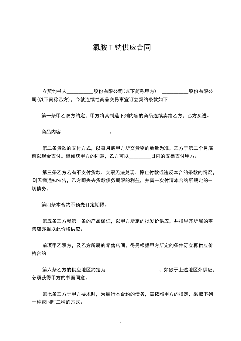 立契约书人___________股份有限公司(以下简称甲方)、___________股份有限公司(以下简称乙方),今就连续性商品交易事宜订立契约条款如下: