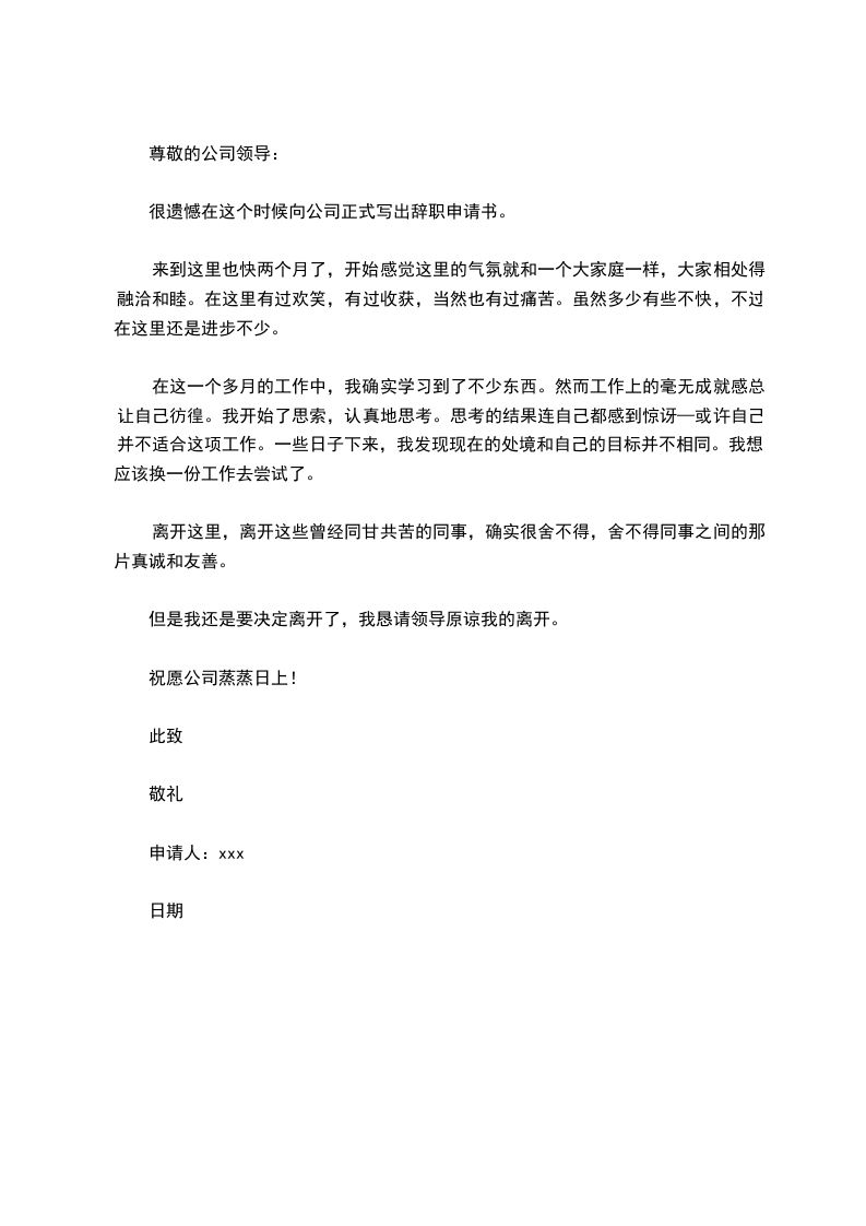 尊敬的公司领导: