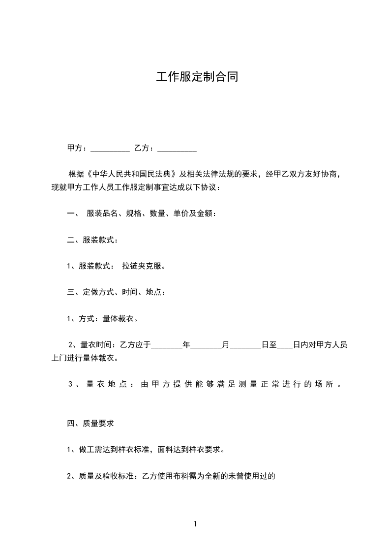 根据《中华人民共和国民法典》及相关法律法规的要求,经甲乙双方友好协商,现就甲方工作人员工作服定制事宜达成以下协议: