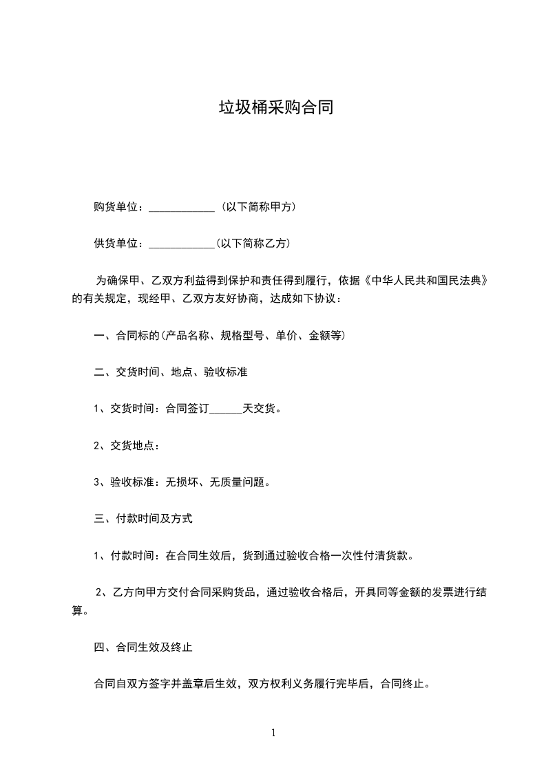 1、交货时间:合同签订______天交货。