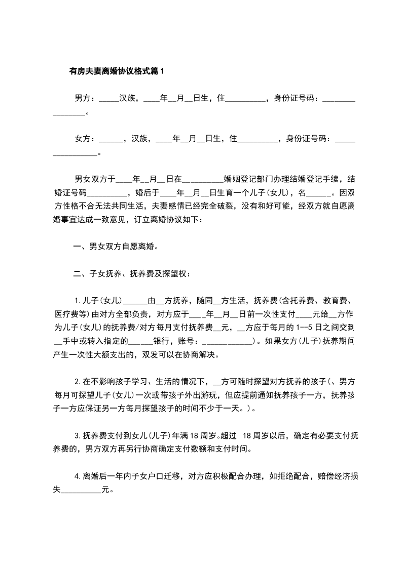 有房夫妻离婚协议篇1