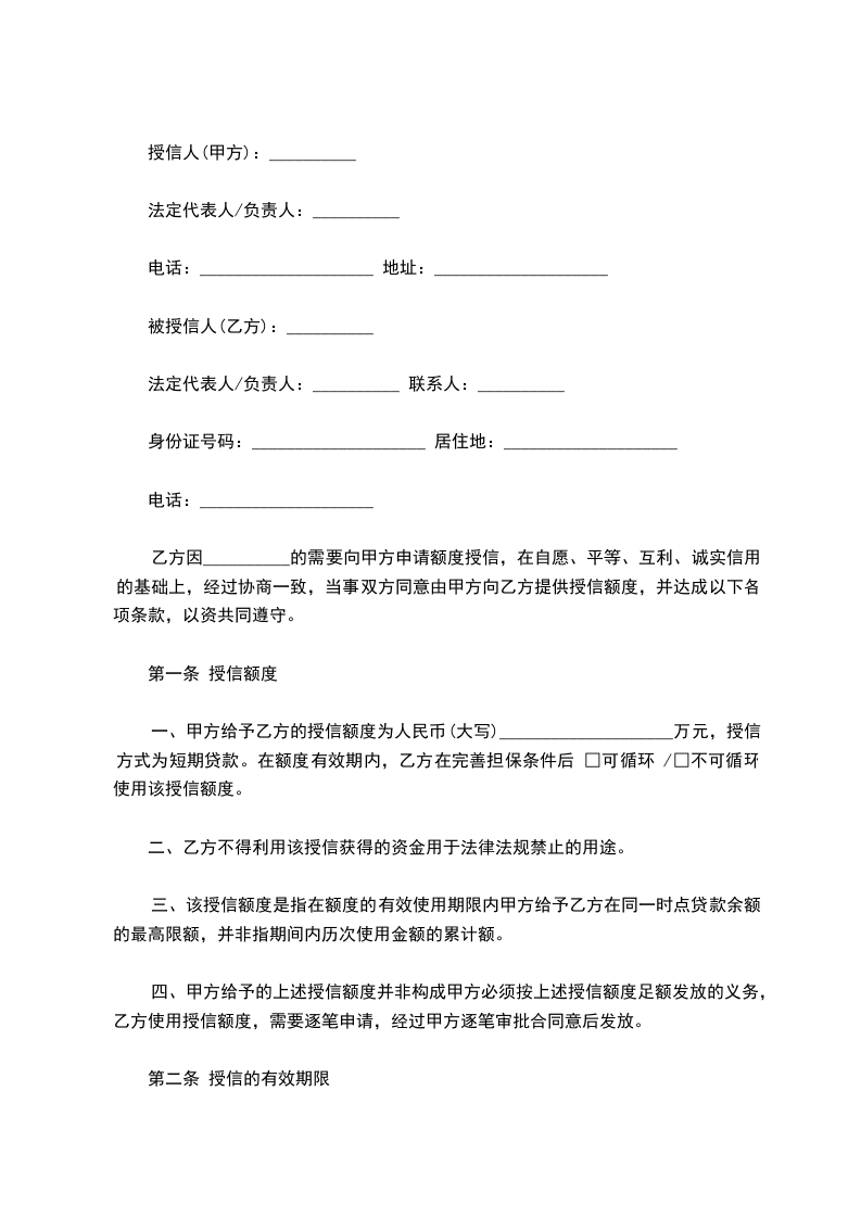 第一条 授信额度