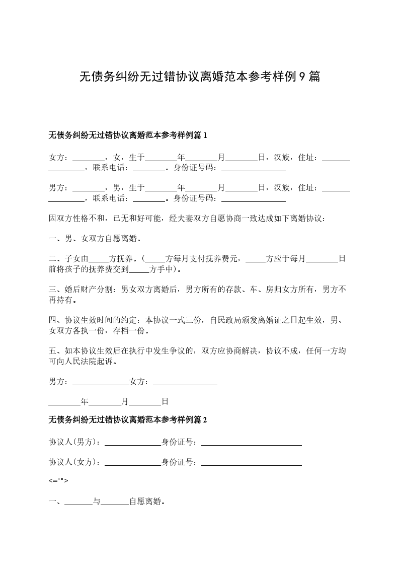 本协议书系双方真实意思表示,上述内容全部真实有效,一旦提供虚假情况,双方当事人自愿承担一切法律后果。本协议书一式____份,婚姻登记机关存档____份,双方各执____份,双方签字,并经婚姻登记机关办理离婚登记后生效。