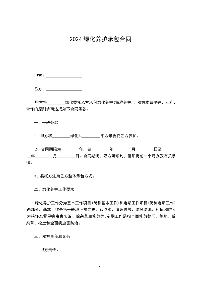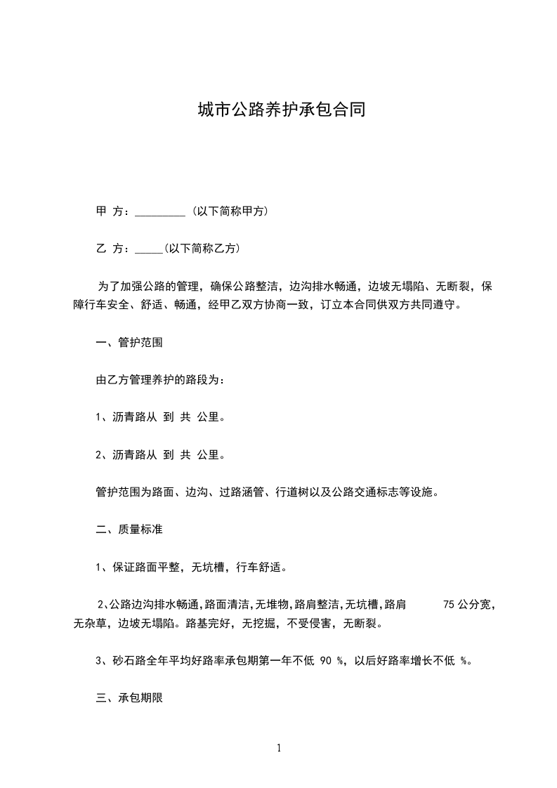 一、甲方将____________高速公路____________段____________KM至____________KM在____________年______月______日至______年______月______日期间的养护保洁工作任务承包给乙方。