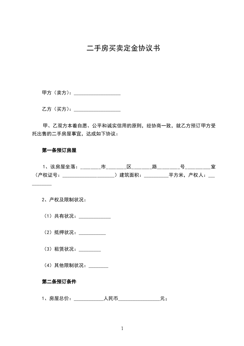 甲、乙双方本着自愿、公平和诚实信用的原则,经协商一致,就乙方预订甲方受托出售的二手房屋事宜,达成如下协议: