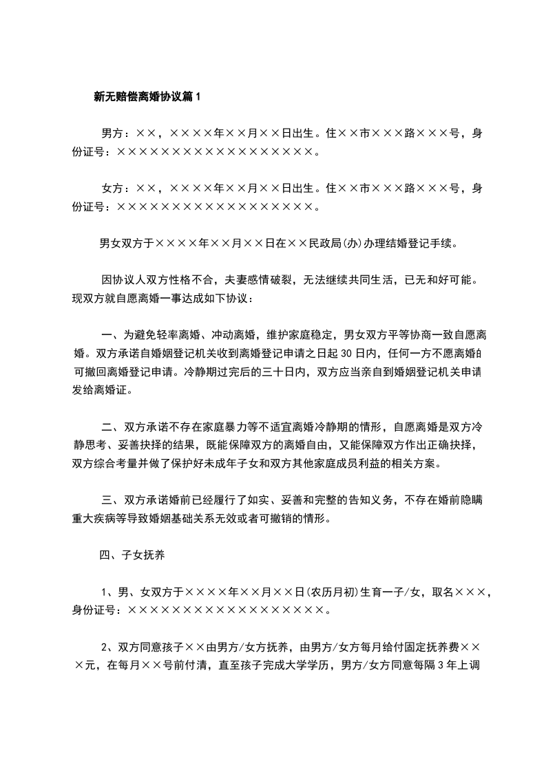 协议双方共同承诺:双方都具有完全民事行为能力,本协议系双方真实意思表示,上述内容全部真实有效,一旦提供虚假情况,双方当事人自愿承担一切法律后果。本协议一式叁份,双方各执一份,婚姻登记机关存档一份,在双方签字并经婚姻登记机关办理相应手续后生效。