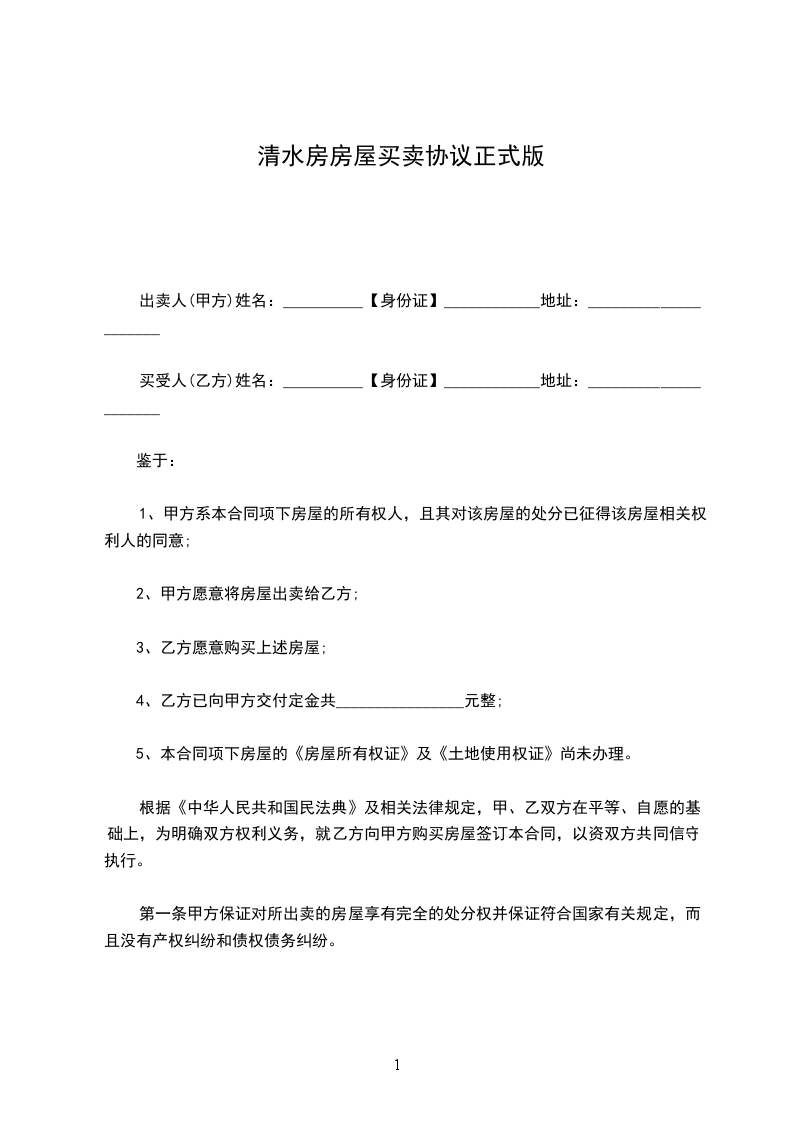依据《中华人民共和国民法典》及相关法律、法规之规定,甲乙双方在平等、自愿的原则,就房屋买卖事项,经协商一致,并经房屋宅基地所有权人同意,达成如下协议: