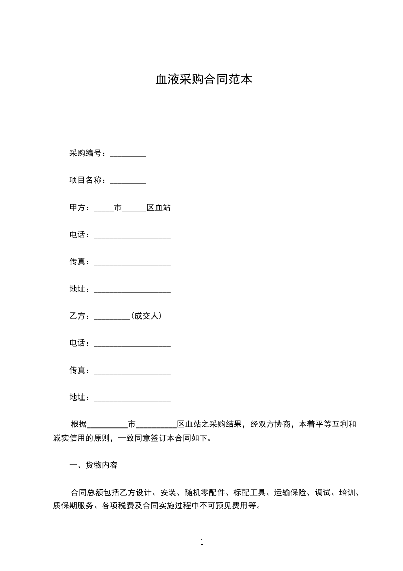 根据__________市__________区血站之采购结果,经双方协商,本着平等互利和诚实信用的原则,一致同意签订本合同如下。