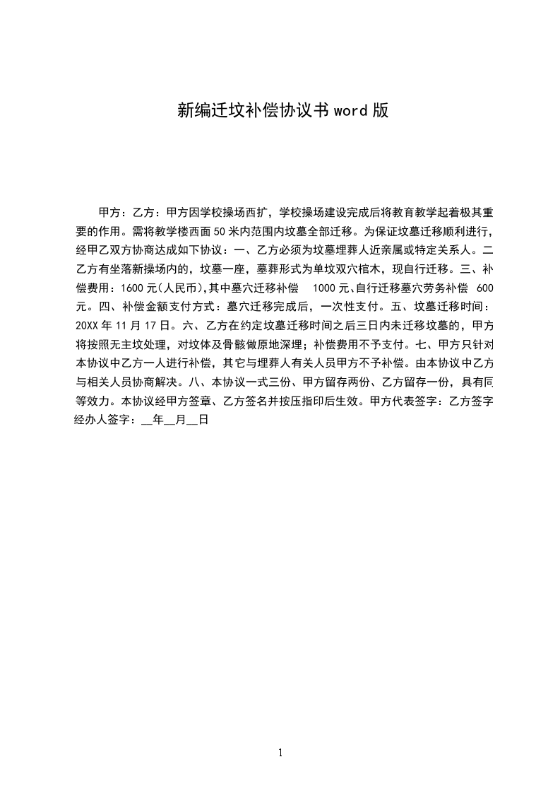 三、补偿费用:___________元(人民币),其中墓穴迁移补偿____________元、自行迁移墓穴劳务补偿____________元。
