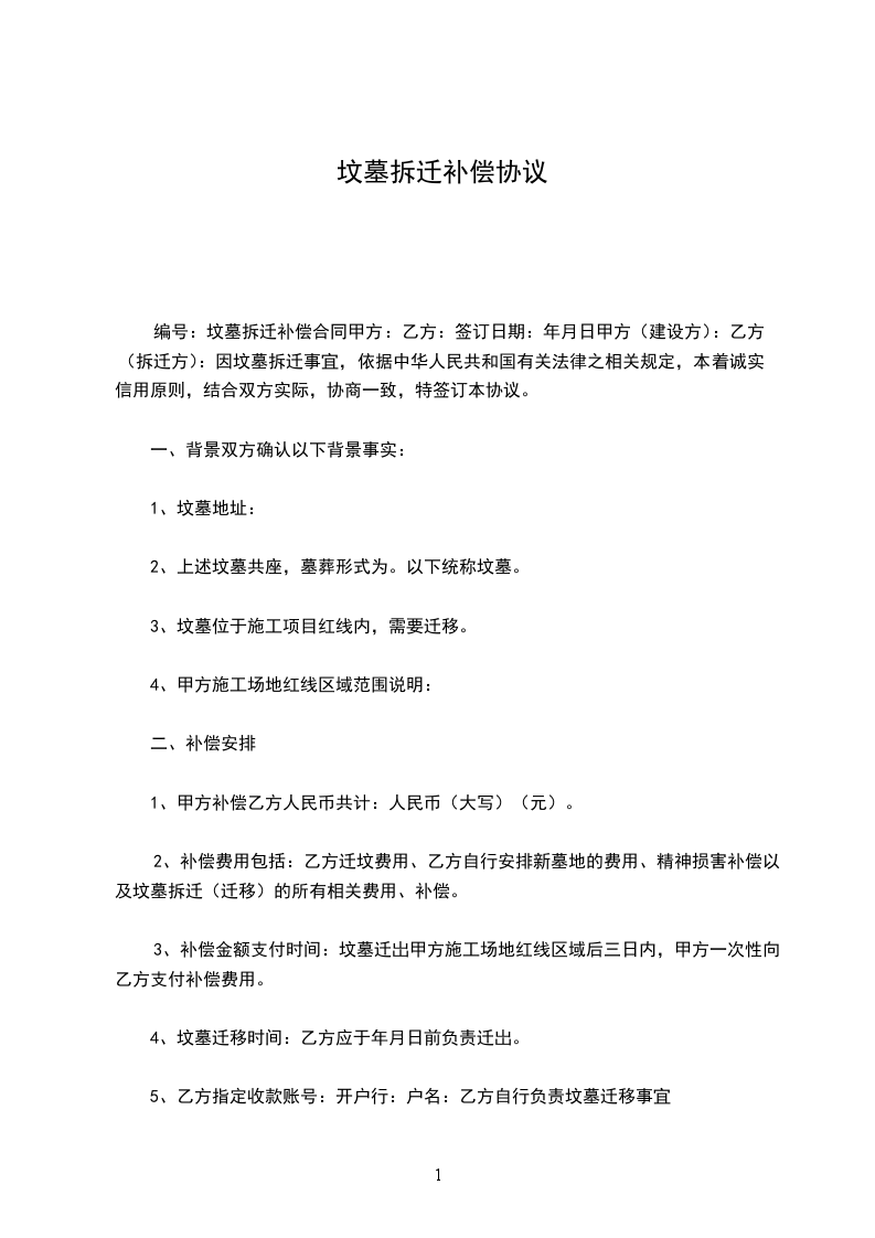 四、补偿金额支付方式:墓穴迁移完成后,一次性支付。