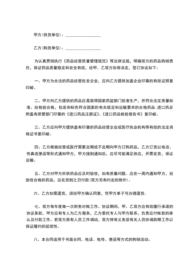 5.本合同一式四份,买卖双方各一份,__________________市医疗机构药品集中招标零售领导小组(以下简称“招标办”)一份,招标代理服务机构安徽XX公司一份。