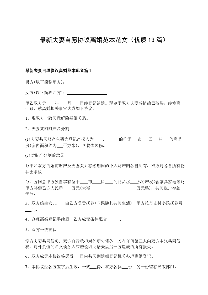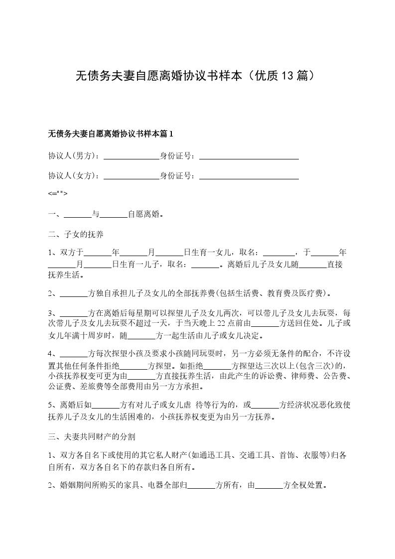 本协议一式三份,一份二张,男、女双方各执一份,婚姻登记机关存档一份,自婚姻登记机颁发《离婚证》之日起生效。