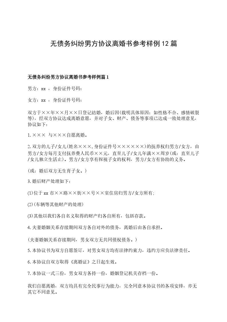 六、本协议书一式三份,男女双方各执一份,婚姻登记机关存档一份。
