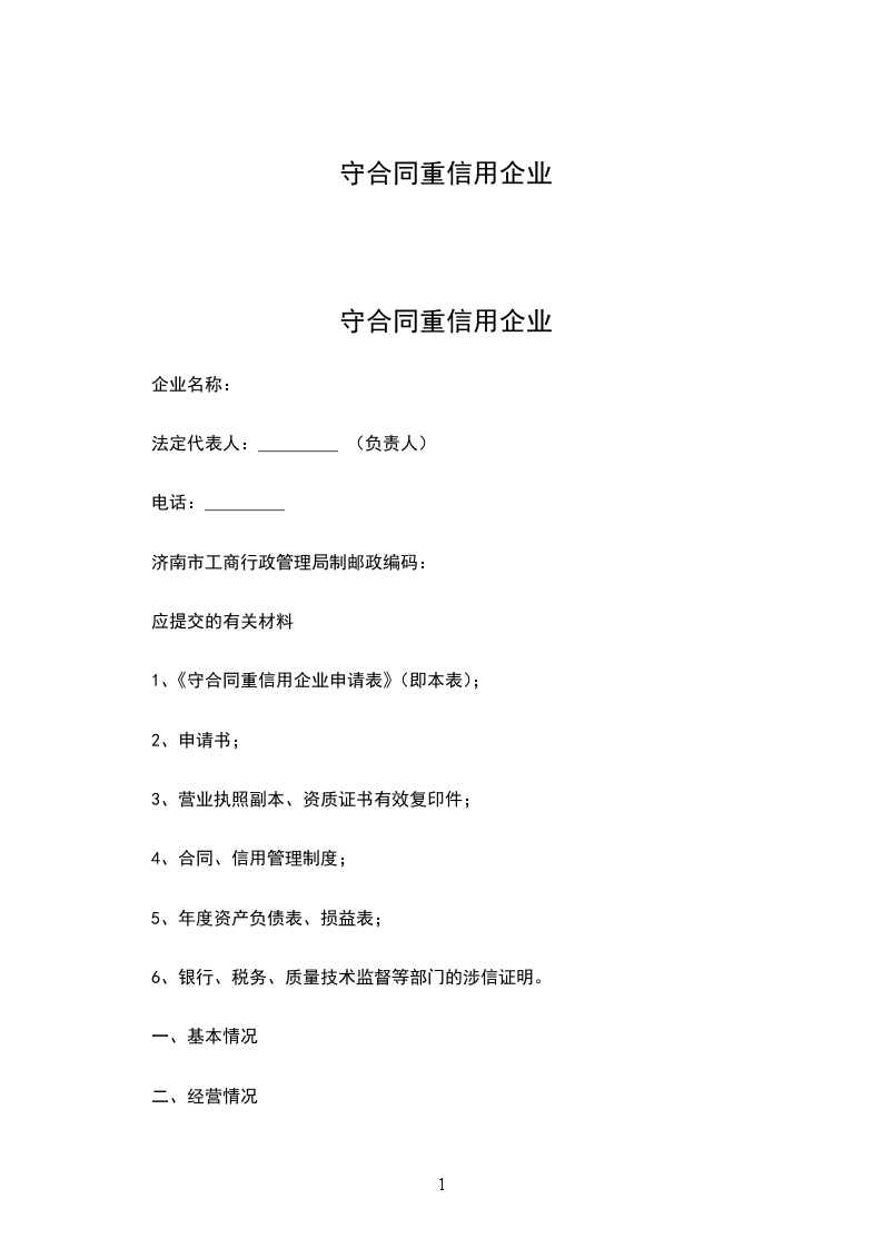1、《守合同重信用企业申请表》(即本表);