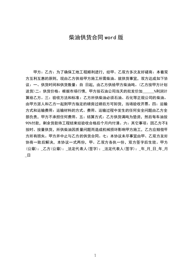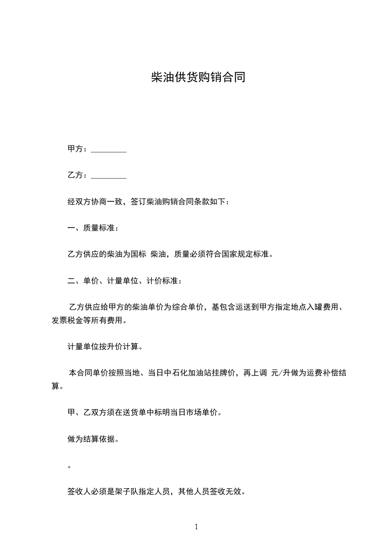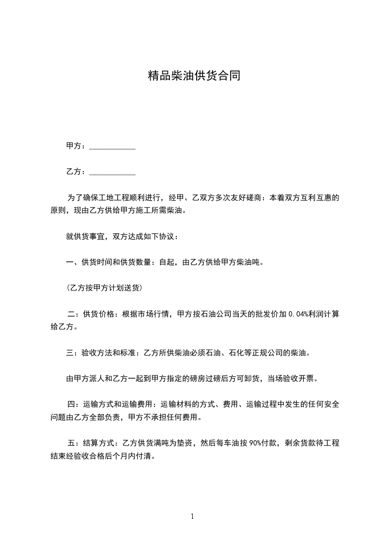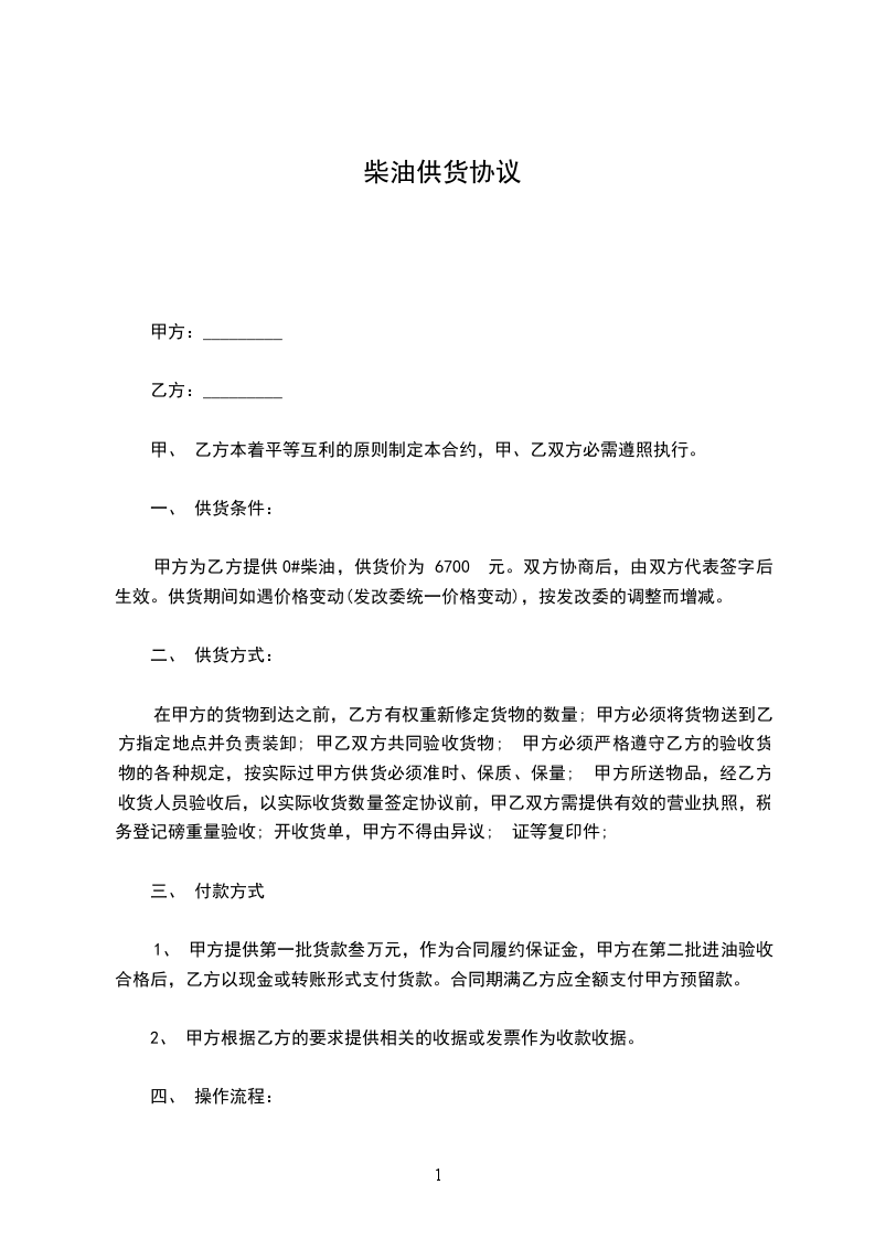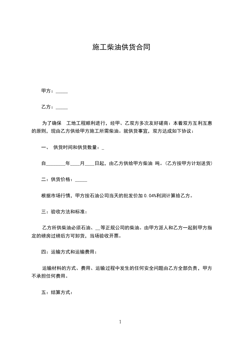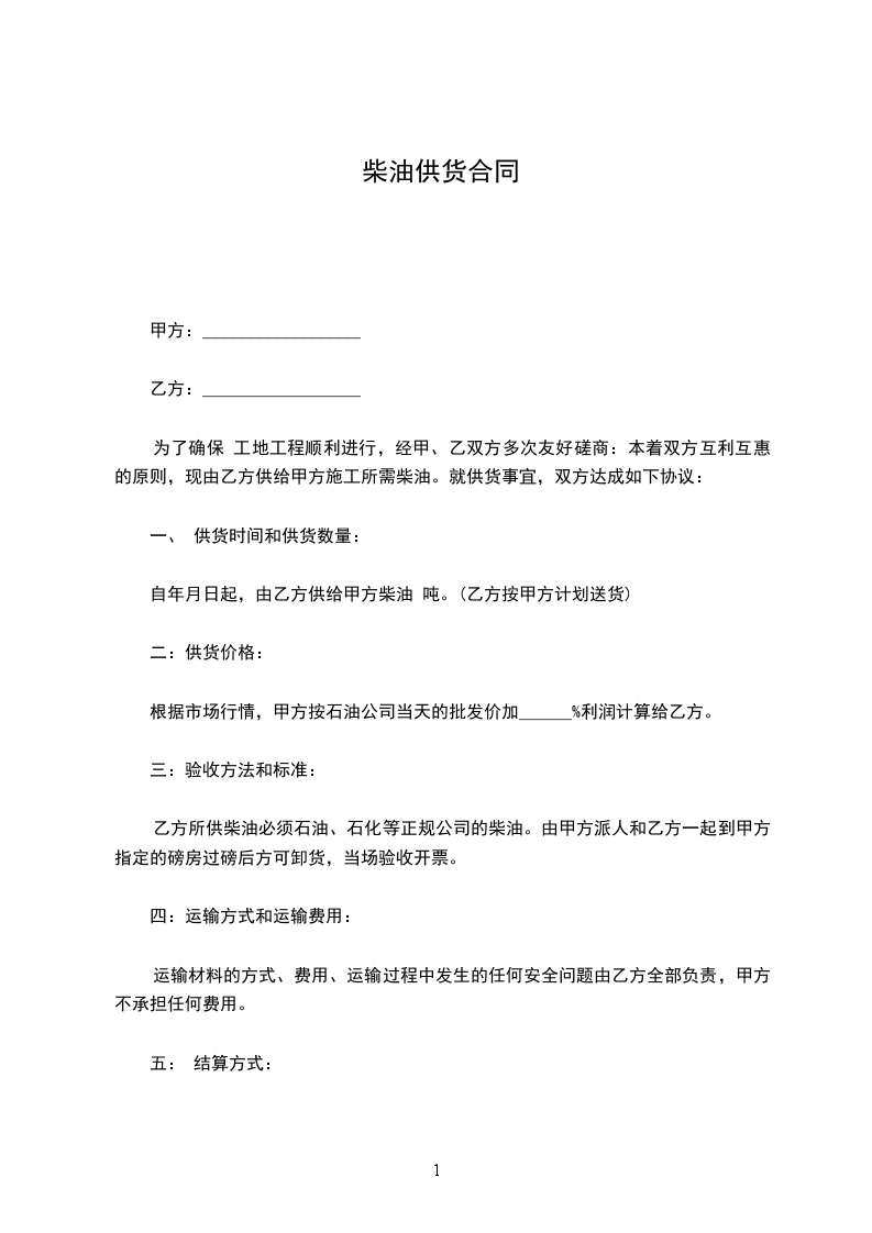为了确保 工地工程顺利进行,经甲、乙双方多次友好磋商:本着双方互利互惠的原则,现由乙方供给甲方施工所需柴油。就供货事宜,双方达成如下协议: