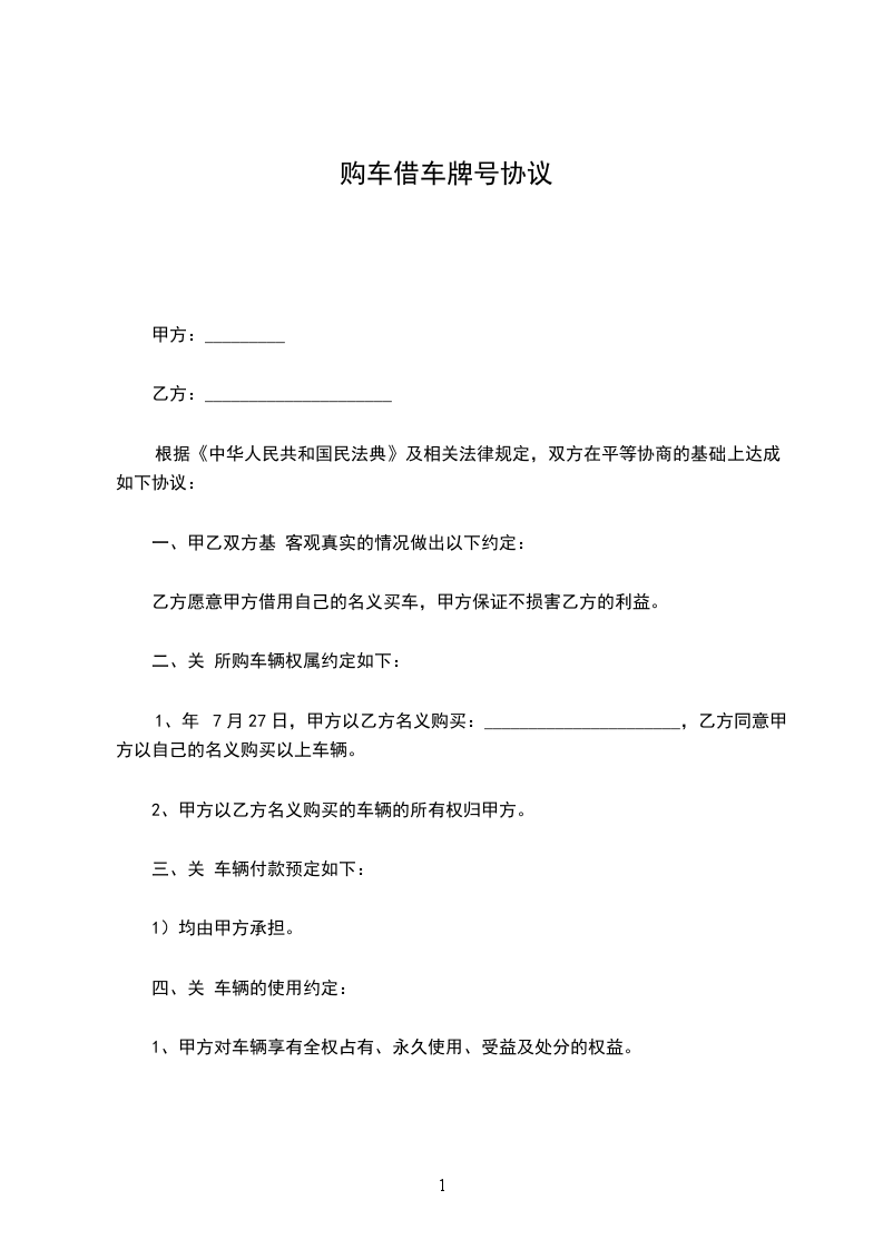 1、 年7月27日,甲方以乙方名义购买:______________________,乙方同意甲方以自己的名义购买以上车辆。
