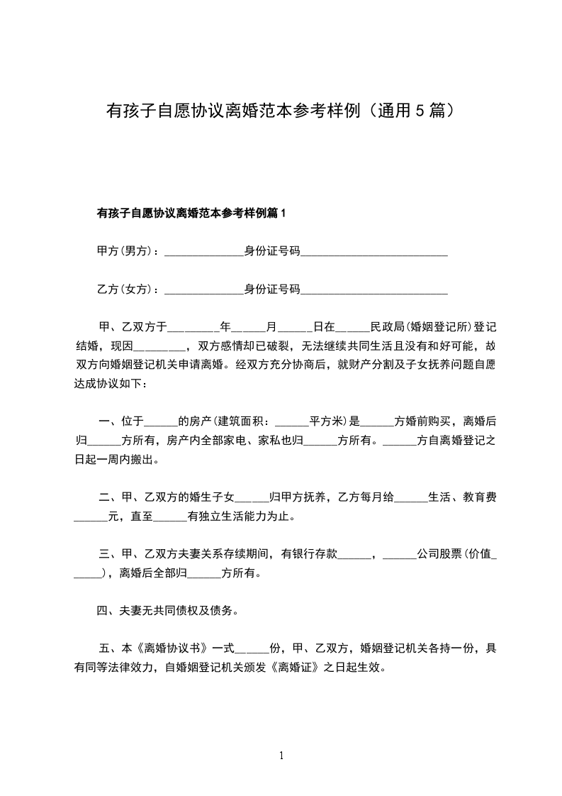 有孩子自愿协议离婚范本参考样例篇5