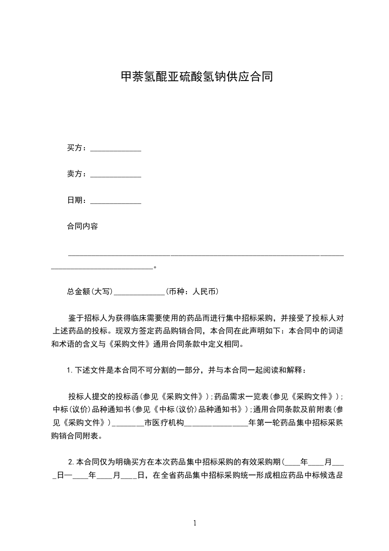 鉴于招标人为获得临床需要使用的药品而进行集中招标采购,并接受了投标人对上述药品的投标。现双方签定药品购销合同,本合同在此声明如下:本合同中的词语和术语的含义与《采购文件》通用合同条款中定义相同。